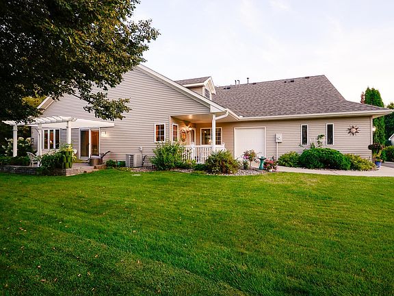Welcome to this beautifully maintained one-level twin home in the desirable Clearwater Estates community! Offering 2 bedrooms, 2 bathrooms, and 1,502 sq ft, this home features an inviting open-concept layout with 9-foot ceilings and abundant natural light. The spacious kitchen is equipped with custom wood cabinetry, a center island, pantry, and newer slate appliances, including a GE refrigerator, microwave, and dishwasher. The sunroom with a cozy gas fireplace is the perfect place to relax, while the informal dining area opens to a private backyard oasis with an aggregate patio, pergola, lush perennials, mature trees, and no rear neighbors! The primary suite includes a full private bath and large walk-in closet, while additional features such as in-floor radiant heat, LVP flooring, 6-panel doors, and updated windows and doors add both comfort and style. The insulated and heated garage offers a workbench, water access, and a convenient golf cart door. Recent additional updates include a new roof and siding (2023) and water heater (2022). Clearwater Estates is a gated community with outstanding amenities, including a heated in-ground pool, clubhouse, scenic Mississippi River overlook walkway, and HOA-maintained grounds with internet included. Conveniently located near parks, restaurants, The Preserve Disc Golf Course, the Mississippi River and more, this property offers a quick close and comes with a one-year home warranty for peace of mind!