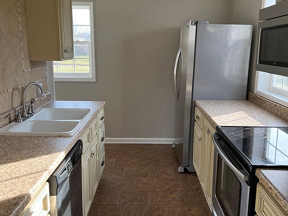 Two bedroom one bath ranch home in Chartiers Houston School District. The home has new carpeted living room, tile bathroom and laundry. The kitchen has a tile floor with with upgraded cabinets a stainless steel refrigerator, dishwasher, over the range microwave, and flat top electric range. The wainscoted dining room and both bedrooms have laminate flooring. Outside is a large flat backyard and detached garage. Tenant is responsible for all utilities, garbage, lawn maintenance, and snow removal. Small pets are allowed with additional fee.