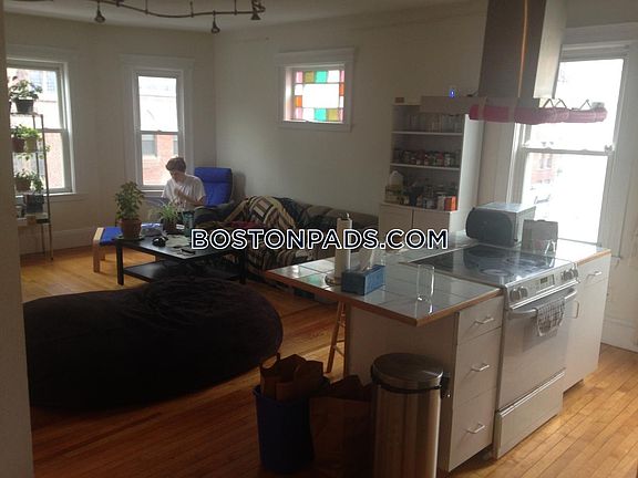 Modern kitchen Open living room/kitchen/dining room Laundry in unit Tons of natural light Hardwood floors