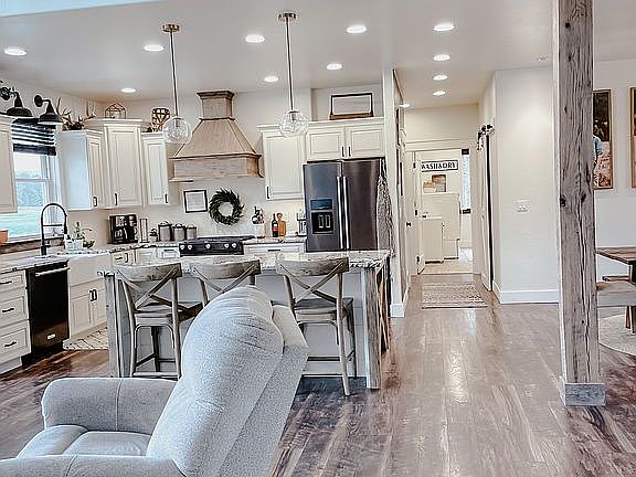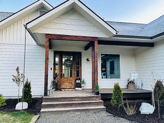 3628 square-foot home on 2.11 acres. Built in 2019, in beautiful Bonners Ferry, Idaho. Located on the highly desirable North Bench. This home is unique to this area, with its modern farmhouse appeal, you won’t find another one like it! This home would be great for a large or multigenerational family, as it has 5 bedrooms and 3 full bathrooms. Upon entering this beautiful home, you will love the open floor plan and vaulted ceilings. Plenty of natural lighting will make this house feel like home! There is a built-in bench and shiplap wall with coat hooks in the foyer. A dining room, and inviting kitchen with custom cabinets and a custom island. Granite countertops. A spacious living room with a gas fireplace, and the perfect mantle for hanging stockings. Large windows will give you an amazing view of wildlife and bountiful North Idaho mountains. This large, luxurious home has a walk-in pantry with a sliding barn door. A laundry/mudroom with a sink that will take you out to a large double car garage. The Master bedroom, located on the main floor, has a private master bathroom, with a double custom made vanity with marble countertops. Tile flooring, a tiled shower and a separate soaking/ jetted tub.. and of course a walk-in closet with a built-in handcrafted bench and shelving. There is a second bedroom located on the main floor with a bathroom just feet away. There is tons of storage both on the main floor and up stairs as well. There is a custom made railing that over looks the living room. 3 more bedrooms located upstairs, along with an office nook, a large full bathroom with double vanity, also with a marble countertop. And a bonus room that could easily be a 6th bedroom, if needed. (It does have a closet, as well as a door) All bedrooms, and the bonus room have blackout blinds, so you can get some sleep even after the sun has come up. Beautiful Kentucky bluegrass sod was laid last spring, as well as a completely remote sprinkler system. Enjoy the sunrise and a cup of coffee on the back patio area. Stay cool on hot summer days with central forced air A/C. This home was built with too many extra details to mention. Absolutely a must see to fully appreciate. Located in North Ridge Estates- second addition, (some CCR’s do apply) only minutes to town, but while still maintaining the country feel you would crave living in Boundary County. End of the cul-de-sac privacy. There is a graveled level area with plenty of room next to this home to potentially build a shop/detached garage. Call 208-290-7981 to set up a showing.