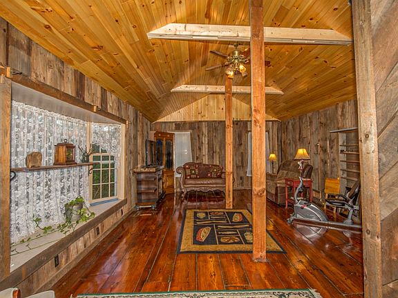 Rumor says this historical home was moved from Enfield & once a schoolhouse & blacksmith shop! Nestled back from the road one can enjoy their coffee on the back porch overlooking Jabish Brook & enjoy the views of wildlife. Nature enthusiasts will fall in love with their own bridge which crosses the brook and brings you to a backyard area where you'll find an oversized shed that has electric and & has plenty of space to house some toys! This rustic 2 bedroom, 2 bath home has a beautiful wrap-around porch in the front, a driveway that will fit 8+ cars and a 2 car carport! Folks will appreciate things like the wide plank antique barn board floors, cathedral ceilings, tongue & groove beadboard ceilings in the LR and the sunken kitchen & dining area with custom built-in hutch & pellet stove to warm yourself on those cold winter nights! Bonus room can be used as an office, playroom or a guest bedroom! This home is a must see! First Open House is Sun, Oct 18th from 10-1pm!