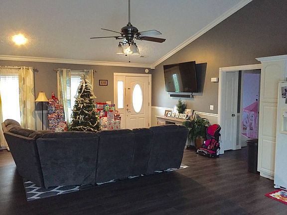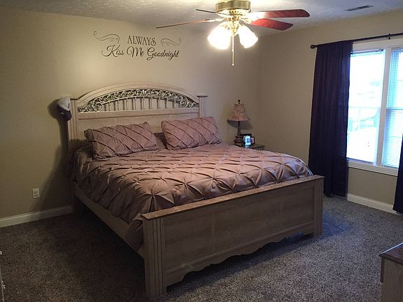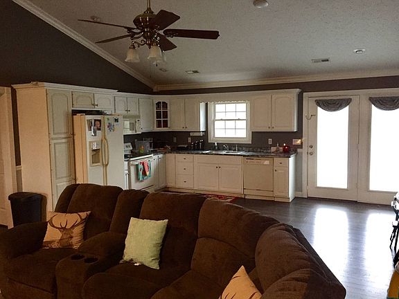3 bedroom, 2 bathroom vinyl sided ranch style home sitting on over an acre of ground. Very large yard. Home sits in a nice quite small subdivision. All homes are well maintained and well manicured lawns. Open concept floor plan with vaulted/cathedral ceilings. Recessed lighting throughout the home. New carpet in bedrooms, laminate flooring in LR and Kitchen. Tile in both bathrooms and in laundry room. Large laundry room with 2 exit doors, one door going to back deck and one going to the garage. 2nd backdoor going out to back deck off kitchen. Crown molding in LR and Kitchen. Nice decorative trim throughout home. Double paned windows with tilt in for easy cleaning. Large attic with entry from garage for storage. Extra large double garage with 2 garage doors with remote entry. Door going from garage to outside. Large pond across the road, pond does NOT come with property but can be used by home owners for fishing. This home is 10 minutes from one of the most popular marina's in Kentucky, Jamestown Marina. The marina is large and offers overnight stays at the motel or cabins, shopping, and includes a floating restaurant. The home will come with a stove, 2 refrigerators (one in the kitchen and one in the garage), over the stove convection microwave oven, new dishwasher, washer, dryer, all faux wood blinds, wall mounted 65 inch smart tv, yard decor, pool, and deck gazebo stays with the home, other items can be negotiated. 3 level deck, 1st level is 12 ft x 32 ft, 2nd level is 20 ft x 17 ft, 3rd level pool side is 12 ft x 8 ft