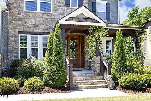 Here's your chance to move to the desirable Amberly Peninsula neighborhood. This outstanding home has 4 bedrooms, 3.5 baths and sits on a private 0.36-acre wooded lot that borders the Amberly HOA buffer and the American Tobacco Trail. Gourmet kitchen with KitchenAid appliances, granite countertops. Also includes a custom granite kitchen table. Kitchen opens up to a 2-story family room featuring a double-sided gas fireplace and spacious sunroom. First floor guest suite with full bath. Large office with custom built-ins. Open wooded staircase leads to 3 bedrooms plus large loft. 3 car garage. Deck expanded in 2018. Well maintained lawn and landscaping, adjustable Goalrilla basketball goal with large court space. Amberly offers resort style amenities with 2 swimming pools, clubhouse, fitness center, sport courts, playground, local tap room and shops. Listing agent is owner/broker.
