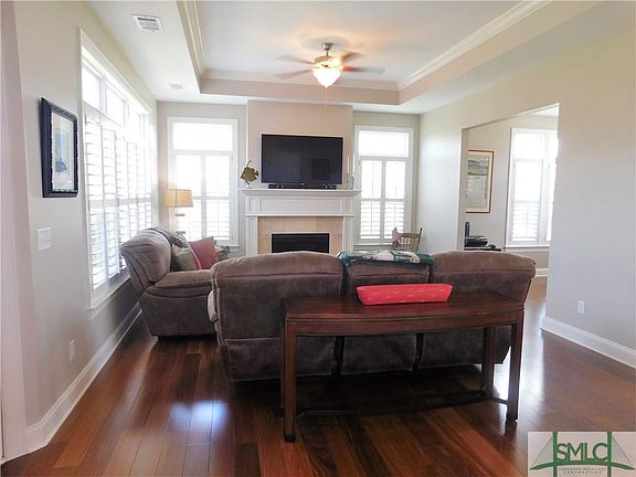 This incredible home in the Fairways at Savannah Quarters boasts hardwood flooring throughout, a gourmet kitchen with granite countertops, a study overlooking breathtaking lagoon views, and a master suite with screened in porch also with views of the lagoon with fountain. This home also features a fenced in courtyard as well as a garage spacious enough for a golf cart. Washer, dryer, fridge, patio furniture and plantation shutters throughout are all included with purchase. Come enjoy the resort life at Savannah Quarters!