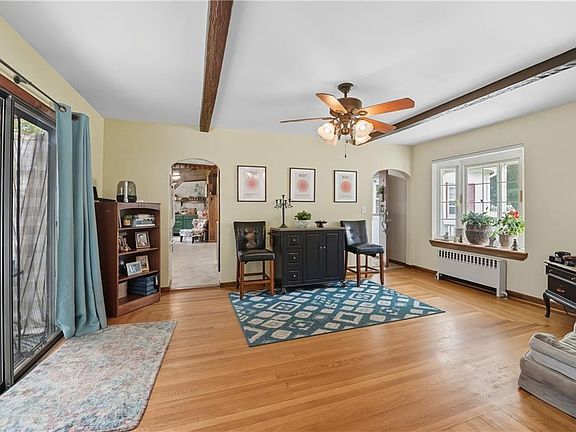 Welcome home! This move-in ready 3-bedroom, 1-bath ranch sits on just shy of a half-acre corner lot and blends old charm with modern updates. Hardwood floors, exposed beams, and custom built-ins add character, while bay windows in both the living and family rooms bring in abundant natural sunlight. The open concept kitchen provides recently refinished cabinets and fresh paint. Step outside on the front porch to relax or your large back deck, offering plenty of space to entertain. The fully fenced side yard is perfect for pets and the back yard is mostly fenced and features plenty of space to garden, and a fire pit for cozy evenings. The finished lower-level adds additional living space with a bar and lounge area, ideal for movie nights or game days. A brand-new boiler installed in September 2025 provides efficiency and peace of mind. Full of charm, character, and thoughtful updates, this ranch is move- in ready and has so much to offer! Do not wait on this one! Showings start at Saturday's open house!