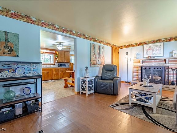 Welcome home to this meticulously maintained brick ranch in Perry Township in Massillon! This 2 bed, 1.5 bath home situated on .41 acre is ready for its next homeowner! Upon pulling up to this lovely home, you will see the fresh mulched beds, gutter guards around the entire home, and a large front covered porch! Through the front door under that covered porch, you walk into the living room. Living room features new luxury vinyl flooring, paint, and a fireplace! Off the living room is the huge eat-in kitchen with stainless steel appliances. The kitchen also has access to back door, garage door to the attached one car garage, and basement steps. Through the back door you will find the fully fenced in yard, with multiple gates, including a car gate! Off the kitchen to the left, are the two full bedrooms and full bathroom. The full bath offers a tiled shower! Largest bedroom can fit a king bed and still have a ton of space in there! Downstairs in the basement you have a huge partially finished recreational room, storage room, and utility/workshop/laundry area that leads to the half bathroom. This home has been truly loved and cared for. Schedule your showing today! Furnace 2025, Hot Water Tank 2025, and list of many more updates!