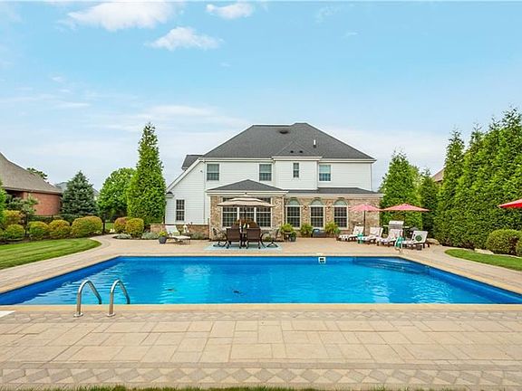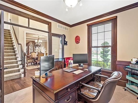 Beautiful 4-bed Koch masterpiece in desirable Indian Meadows. Home is loaded with upgraded amenities including a dream kitchen featuring antique glazed cabinetry, granite counters, large center island, 6-burner gas stove, Kenmore Pro refrigerator, high-end pro stainless-steel appliances, 2 pantries, breakfast nook, real hardwood flooring, carpet in family room offering a built-in entertainment center with ss and gas fireplace, beamed ceiling w/ all custom blinds. First floor office with rich wood built-in bookcases, formal dining room with bay window, master suite has tray ceiling with lighting, master bath jacuzzi tub, huge double shower with designer tile, two sinks, huge walk- in closet. Jr. Guest suite + 2 guest rms. Newly finished basement w/ walk-out and steps. 2nd office suite, USB outlet upgrades, custom 12" rainfall shower & glass door, tiled storage closets. Enjoy the pool in complete privacy, wrought-iron fence,and newly grouted paver patio with lush landscaping & lighting!
