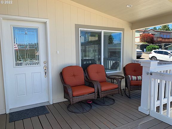 Better than new! 2021 home on corner lot with great open views of the Canyonville surrounding hills in Knoll Terrace 55+ Community. Open concept living, dining and kitchen space. Fenced front deck with low maintenance front yard landscaping. Custom finished and insulated garage with vinyl flooring and craft workspace. Garage pet door access and ample storage throughout. This is a must see!