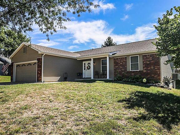 BEAUTIFUL TOTALLY UPDATED MOVE-IN READY 4 BEDROOM RANCH ON QUIET CUL-DE-SAC! THIS SUPER CUTE HOME HAS SO MUCH TO OFFER! Maple hardwood flooring compliments entire main level. Vaulted great room features 2 velux skylights with remote blinds open to kitchen & breakfast room w/ custom solid wood farmhouse table built around bay window & stays with house. Brick wood-burning fireplace gives this home a cozy, rustic feel along with a custom built barn door coat closet in entry. Kitchen has new cabinets, breakfast bar & newer appliances. Bathrooms have been totally updated with GORGEOUS tiled shower in master bath. Entire main level painted in 2018. Lower level has large 4th bedroom & family room with bar & half bath. New carpeting in lower level. Exterior has new concreted driveway, patio & porch. Siding replaced in 2015 w/ insulated foam backing which is hail proof. New Anderson windows & French door. New roof. This home is a much see! Nice kid-friendly subdivision with recreational lake