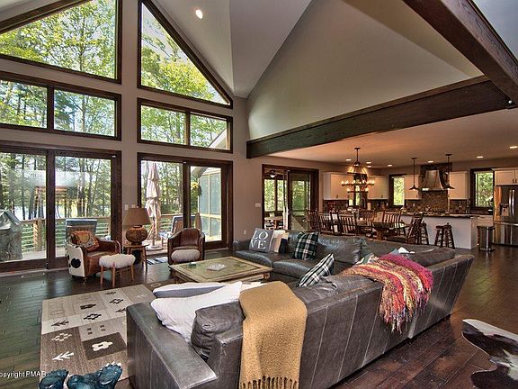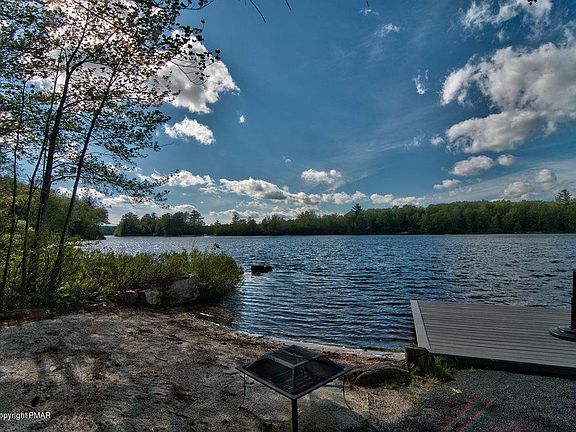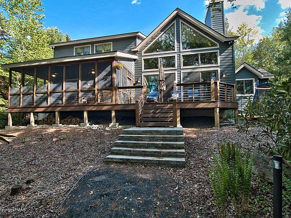 Exquisite LAKEFRONT home with a breathtaking view, located between the Lake Naomi Clubhouse and the Lake Naomi Pool. This custom home received the Pocono Builders Association 2014 Building Award. House features 5 bedrooms, 4 1/2 bathrooms. Master bedroom suite on first floor. 2nd and 3rd bedrooms with private baths on second floor. ultra modern kitchen, floor to ceiling stone fireplace, engineered hardwood floors, cast iron tubs, huge screened porch, new dock with trex decking, trex decks and stairs, geo thermal HVAC, 20KW generator, on Community sewer, underground electric wires, hardie board cement maintenance free siding, lighted path to the lake, plus a stream that empties into lake; A MUST SEE.....