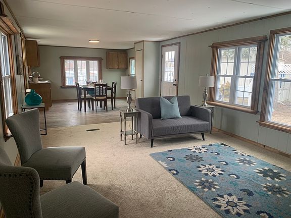 Wow you will be impressed with the size and condition of this beauty! Set up on the hill overlooking the park, this mobile home has the size and storage you need. With EVERYTHING updated, including windows, flooring, cabinets, bathroom, plumbing, electrical, and furnace. The bathroom has hookups for a stacking washer and dryer. So spacious with large closets in the 2 good sized bedrooms. You will love the paved driveway and the large yard. One of the biggest yards in the park! The living room can be downsized to add a wall, to create a 3rd bedroom if necessary, and you will still have ample living space. Park fee includes water, sewer, taxes, trash removal,and road plowing. Showings begin at the open house 3/26/2023. Time TBD.