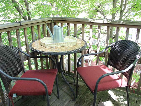 Beautifully renovated space with dark hardwood floors and high ceilings. Enjoy open air feeling with this duplex home complete with traditional wood staircase. Cute balcony off the living room for your warm weather enjoyment. Lovely kitchen with wood cabinetry, granite countertops, and stainless steel appliances. Oversized bedroom with vaulted ceilings and incredible closet space including a walk in. Tiled bathroom with full size tub and skylight. Great natural light, recessed lighting, ceiling fans. Storage and free washer dryer in the basement. Welcome home.