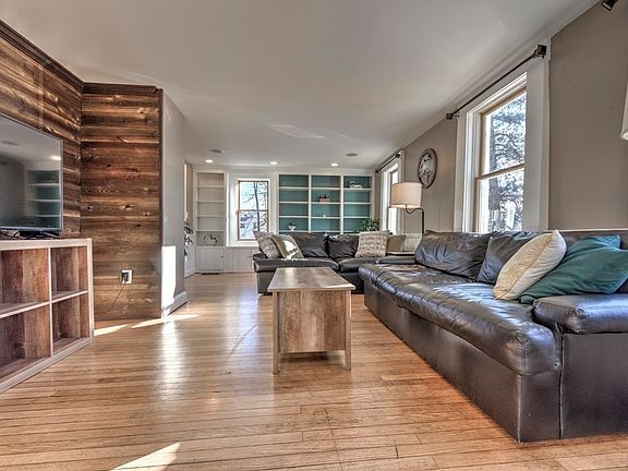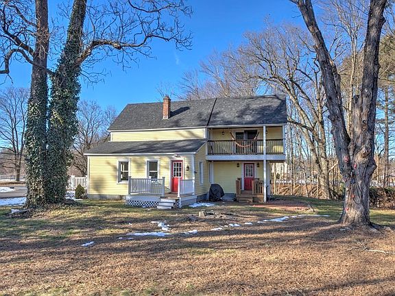 Peace, quiet, a stream and acreage behind this well-kept colonial on 4 acres with very pretty wood floors both upstairs and downstairs. Backing up to woods, this home's lower deck and main bedroom's window, balcony & primary bath tub with jacuzzi tub all face foliage. Updated kitchen w/ ceramic tile floor, breakfast bar, great storage -- all open to dining area plus a deck for morning coffee or cooking out. Spacious living room with large built-in bookshelves. Wide plank floors in primary bedoom w/ walk-in closet, custom tiled bath, double sink, deep tub, and balcony. 2-year old Rheem natural gas high-efficiency heating unit, 2-year-old central air unit. BRAND NEW HOT WATER TANK JAN 2024. 2nd floor hammock for downtime. Newer electical panel. Roof approx 7-10 yrs old. Most rooms repainted since December. 2nd bedroom has enormous closet. 1st floor laundry. 3rd bedroom in rear could be home business (separate entrance). Westfield HS within yards.