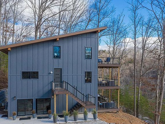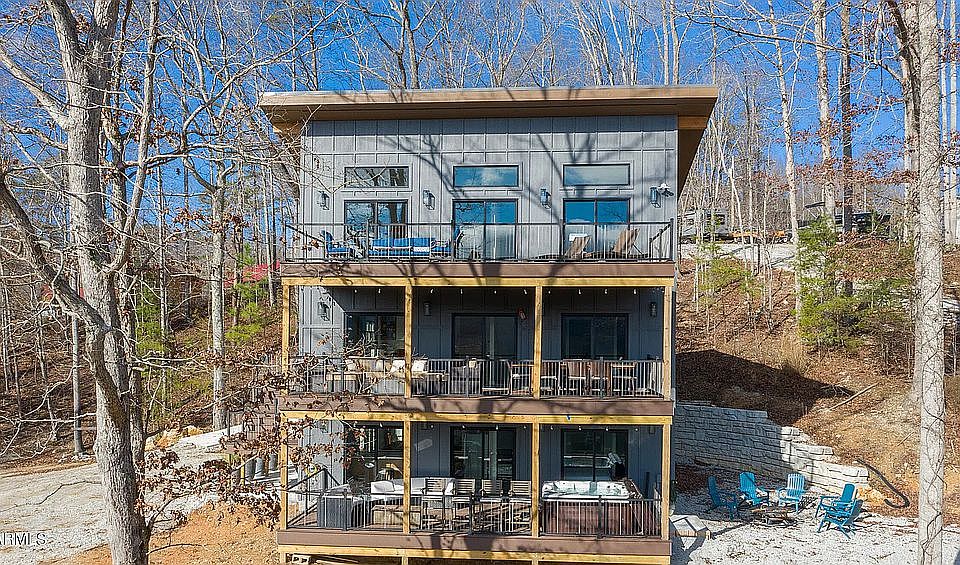 Fully furnished income generating vacation ready home with two kitchens a game room and 3 balconies with a view on every level! Only 10 minutes from I-75, 30 from Knoxville, and a short golf cart ride to the marina. The first level can be closed off from floors 2 & 3 for separate seasonal rental, or rent just this space and live in the upper portion of the house, or vice versa! So much potential with this property! There are two bedrooms on each level. First floor boasts a full kitchenette, bar, pool table and comfy seating for movie watching. The two bedrooms share a large hall bath. There is a door at the bottom of the stairs to section this space off for its own private apartment opportunity. The deck has a full view of the mountains and lake that you can enjoy from the hot tub, or the fire pit on the side of the house that has a rarely found flat landing for corn hole or other outdoor activities. Second floor is accessed from the main external entry or the first floor below. When you walk through the entry you will be met by a beautiful kitchen that is "chef's kiss!" This level has a bedroom with on suite bathroom and an additional bedroom that shares the laundry room/bath. The deck leads way to many family dinners around the patio table and comfy late night chats by the gas fire pit. Third floor is another space to hide away when in large groups with its own seating area and wet bar, along with two more bedrooms with on suite bathrooms. The deck provides the perfect opportunity to sun bath in the trees with the birds! The view is breathtaking and after a nice lake rain you will often see rainbows arching over the lake for a great reminder of the beauty you are living in! The almost 1 acre lot still has a ton of potential to add a garage or infinity pool lakeside to enhance your enjoyment even more!