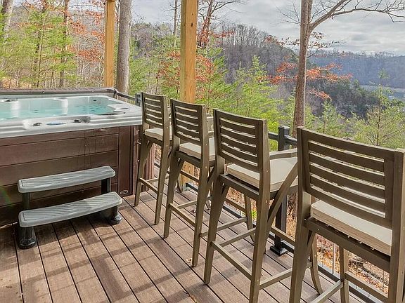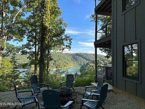 ensuite baths, a wet bar area and an additional recreation/den area. On all 3 levels there are large decks with pvc decking and stainless steel cable railing to provide that unobstructed view of Norris Lake and the mountains that you have been looking for. Outside the lower level is a cozy firepit area, hot tub and more seating with an additional gas firepit on the patio/deck. Home has a nice concrete drive and lots of gravel parking made possible with the stone look retaining wall. Within walking distance to popular Twin Cove Marina or take a golf cart down. Minutes to I-75 and ATV trails. This beautiful home would make the perfect vacation home or year around residence. Home is currently used occasionally as a rental as well as an owners retreat. Dividable into the lower level as a unit and then the 2 upper floors as a unit as well if you want space for you and still use a large portion of it as a rental or vice versa. There is also an electric/sewer on site for a RV and EV charging spot. Lots of possibilities. Call today to schedule your private tour.