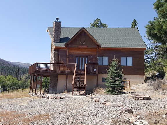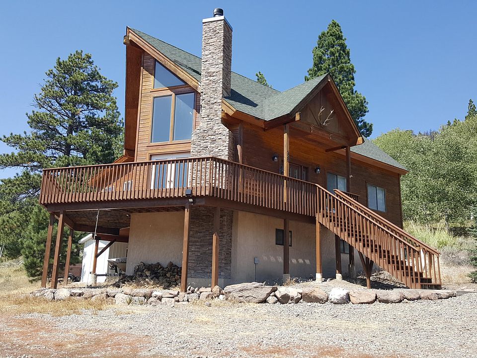 Beautiful year around chalet cabin with vaulted ceilings and a prow front for sale in the Clear Creek Canyon area. This 4 bed 2 bath cabin sits on .87 acres, has a little lake view on the deck, usable land, private well and is not in a subdivision. This cabin features a forced air furnace, wood burning fireplace, propane stove in the kitchen, loft master bedroom, extra deep garage, a detached tool shed and much more. Enjoy the cool mountain air and panoramic view on the over sized deck or take a short ride to the lake or the national forest. The main floor has the kitchen, two living rooms, an office, a bathroom and two bedrooms. The upstairs loft is currently used as the master suite. The walk out basement has the garage, laundry and more bedroom/living space. The cabin is set up for year