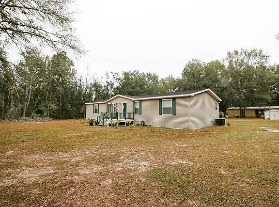 Own Your Own Farm! This super clean 3/2 home sits on over 11 acres on a paved county road in North Gilchrist County. The home features a split plan with an open concept. There is a large deck on the front of the mobile home and the huge covered porch on the back allows for views of the entire property. The property has fencing and pens for horses, cows, chickens, goats, etc. This home is located in North Gilchrist County near several springs, as well as the Suwannee & Sante Fe Rivers. Gilchrist County offers low taxes, low crime, great schools, and an amazing country lifestyle. Call today for your personal tour of this great home & property!