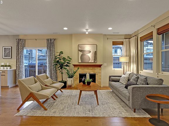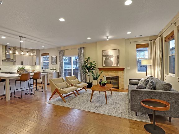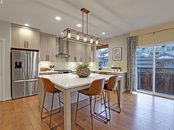 Open floor plan main level with high ceilings. Fabulous remodeled kitchen with quartz counters, Bosch appliances, tile back splash and oversized eat-at island. Lux updated primary bathroom with tile, step in shower with glass barn door, dual vanities, extra storage and a sharp color palate. Engineered wood floors on the main and new carpet upstairs. Private fenced deck and attached two car garage. Moments to Market of Choice and all the amenities that Timberland Town Center offers.