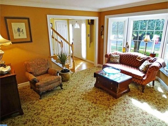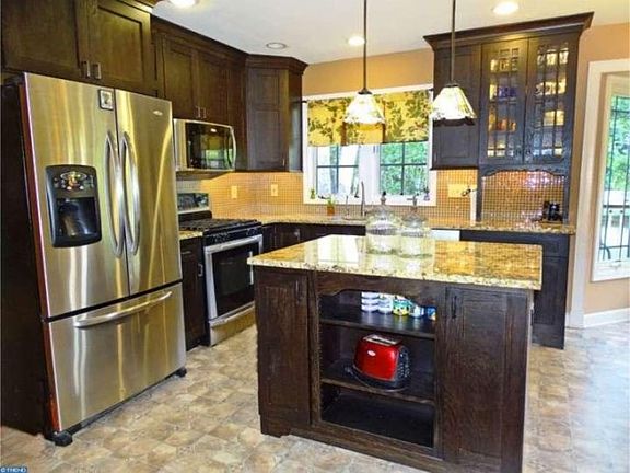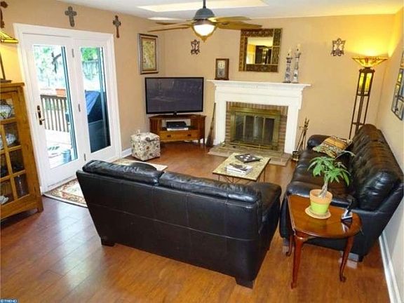 Stunning Georgetown Brick Colonial complete with quality details - keystone brick over windows and Quoin corners, brick chimney, dental molding, and prim window flower boxes. Rich warm tones would best describe the feeling that envelopes you in this home. Step into the Foyer wood flooring that opens to the Living room illuminated by a full walk-out bay window; notice the wood molding detail throughout. Living room opens to formal Dining room finished with Crown molding and chair rail. Custom remodeled kitchen by Thomas B Builders, flaunts handsome 42" solid wood cabinetry, glass door accents, functional center island storage with pendant lights, granite counters complimented by tile backsplash, stainless steel appliances, gas range and recessed lighting. Breakfast room walk-out Bay window looks out to the deck and tree ensconced back yard. Breakfast RM flows into the Family room where the wood fireplace and twin skylights are the focal points, wood laminate floor and atrium doors to deck. Powder room and garage access completes this level. The 2nd level Master suite retreat is separately tucked away with amazing contemporary tiled bath complete with extended glass shower and soaking tub, deep walk-in closet, gorgeous wall-wall windows with circle-top accent; 3 additional window bright bedrooms with ample closet space and ceramic tiled guest bathroom complete this level. Lower level partially Finished Basement for that recreation room or office with natural light and Egress window; the other half offers generous storage space and laundry facilities. Picturesque tree lined streets, minutes to parks, all shopping, I-95, Train, Rte 1 & PA TP.