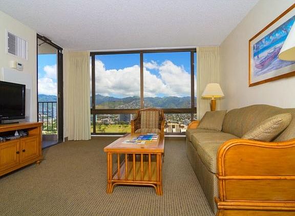 Enjoy the spectacular/sweeping view of mtns/city/golf course/canal/city lights and occqsional rainbows from 31st fl. End unit with mtn and Ewa view on cooler side. Renovated/fully furn'd hotel pool unit w/NC certificate to rent daily! A pet friendly bldg w/resort-class amen. near busline and only a few blocks to famous Waikiki Beach/zoo/park and many attractions! WCC w/many events across the street!