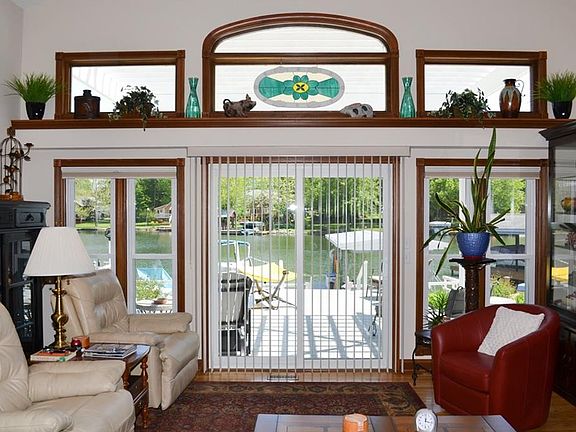 3 Bedroom 2.5 All Brick Ranch On Level Lot On The Water. Home Has Recently Been Upgraded Through Out. Boat House With Power Lift. 1300 Sqft. Lighted Dock, On Deep Water Cove With Great View. 600 Sqft Deck With Pergola As Well As Sunsetter Awaning. Brick Patio W/ Fire Pit. Entire Property Professional Landscaped. 10 F.T Ceilings- 4 Car Attached Garage- Geothermal Heat & Cooling (2015)- Plenty Of Parking On Lg. Concrete Circle Drive. All New Appliances- Misses Clean Lives Here!!
