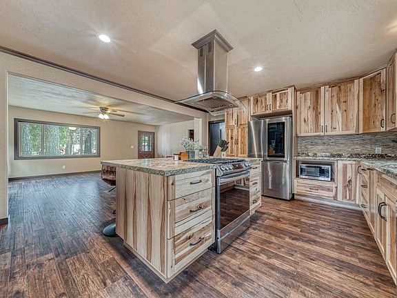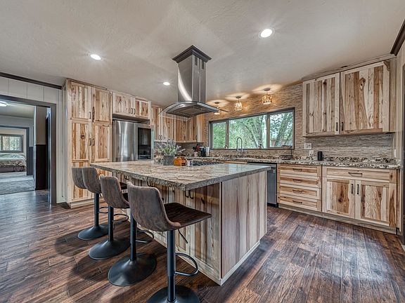 This freshly renovated 3-bedroom, 2-bath home sits in a quiet neighborhood on nearly 4 acres. All new kitchen features new appliances, gas cookstove, granite counter tops with petrified wood backsplash and beautiful Hickory soft close cabinets. New carpet and luxury waterproof Pergo laminate (with lifetime warranty) throughout. This house features a basement that is great for storing wine or canned goods and a large attic with room for storage. The hearth surrounding the wood stove is inlaid with large pieces of petrified wood and obsidian from the Black Rock Desert. Some of the other features include a new iron filtration system, new upgraded windows, fully remodeled bathrooms with Spanish Travertine tile, electric bathroom heaters, new exterior paint, updated electrical, there's even a cedar lined walk-in closet in the primary bedroom!! The list goes on and on. Property includes shop/large garage with double doors and reinforced ceiling to lift engines from vehicles. Shop is plumbed for air tools and equipped with an air compressor and several workstations, as well as a drill press, welder and miscellaneous tools. Outdoor space includes a greenhouse, boat house, carport, woodshed/toolshed, 2 separate garden areas, fruit trees as well as a sand/gravel pit at the north of the property (great for a dirt bike track???). Looking for a fresh start, book your tour today!
