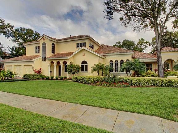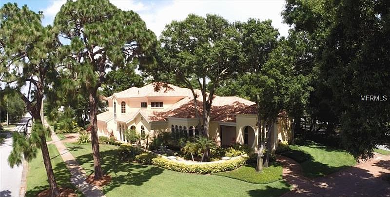 This masterfully constructed, 5 bedroom, 5.5 bath home built in 2005 is luxurious, spacious and beautifully designed with everything you could ever dream of -- and more. A welcoming arched entryway leads you to the bright, open foyer with marble inlay designs on the travertine tile floor, formal dining room, formal living room, den/library, powder room and fantastic master suite. With French doors leading to a private patio, the master suite features a sitting area, tray ceiling, and his and her walk-in closets. The master bath epitomizes luxury with tile floors, dual vanities with granite tops, solid wood cabinets, separate water closet, huge shower, and Jacuzzi tub with a window view of your beautifully landscaped property. The large, open kitchen features tile flooring, a center island, stainless steel appliances, extensive counter space with granite and solid wood cabinetry. An adjacent informal dining area, great room with gas fireplace and wood flooring, full bath, butler's pantry and oversized utility room complete the main floor of your dream home. The upstairs has four bedrooms, three baths, large balcony, and sitting area with built-in office nook. Outside, relax on the covered, screened lanai and patio with heated swimming pool and spa, Thermador grill, and impeccable landscaping with mature trees. This home has a 3-car garage with separate side entry. Located in the heart of Belleair on the corner of Pine Road and Ponce De Leon. First time on the market.