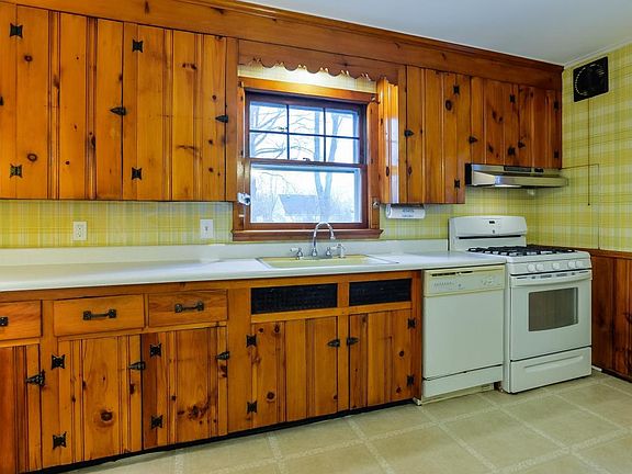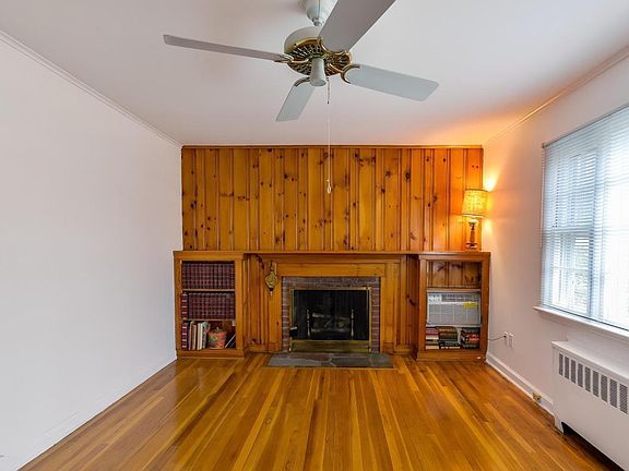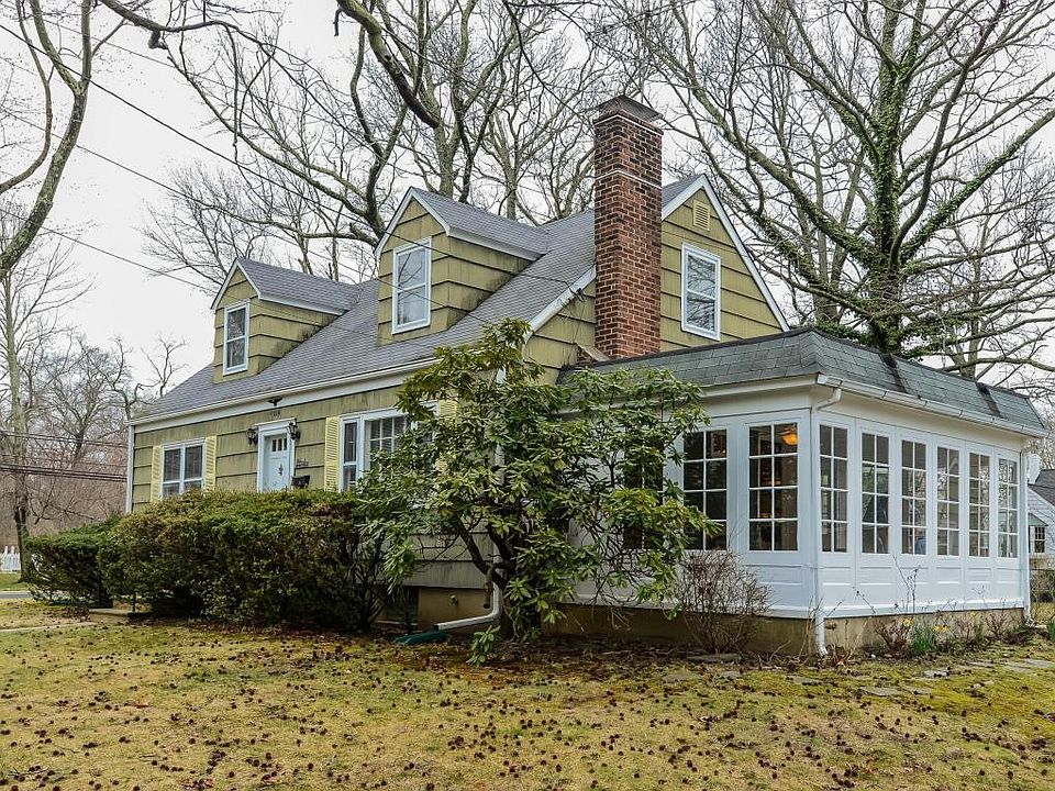 OAKHURST 1950's Cape with 4 bedrooms and 2 full baths on corner lot. One owner only. Hardwood floors throughout. Fireplace in living room and built-in book cases. Large eat-in kitchen with real retro knotty pine cabinets. Access to enclosed sunny porch. Large bright room in basement has new carpet and heat. Perfect playroom, exercise room etc. Detached two car garage, bonus room above with new carpet, freshly painted, and half bath. Close to beach, transportation, and entertainment.