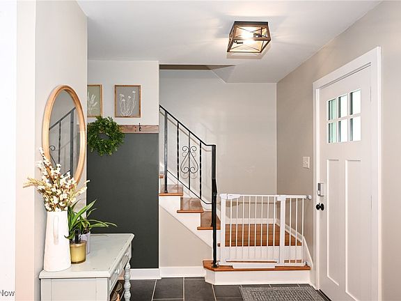 Welcome home to this beautifully updated house in Munroe Falls! Inside there is a convenient entryway bench, perfect for storing shoes and book bags. The large living room features a built- in electric shiplap fireplace and flows into the open concept dining room and kitchen. The kitchen was remodeled in 2023 complete with stainless steel appliances, white soft close cabinets, beautiful quartz countertops and a white subway tile backsplash. Rounding off the first floor is a half bath for added convenience.