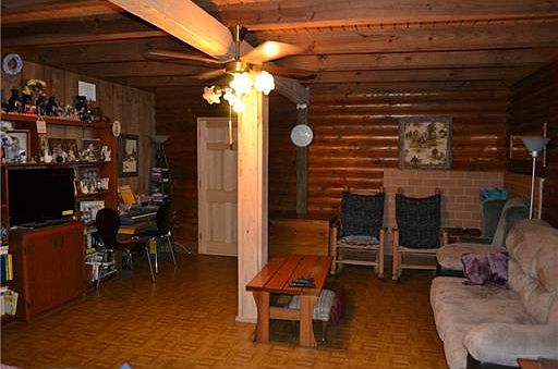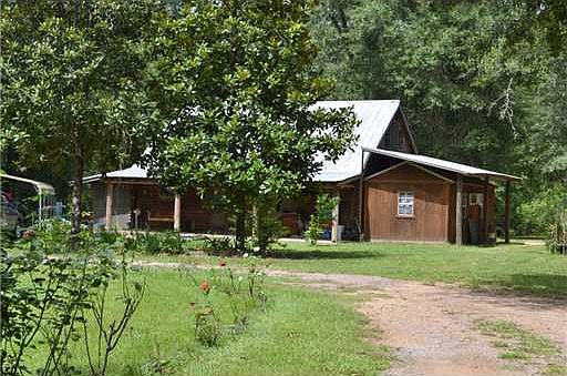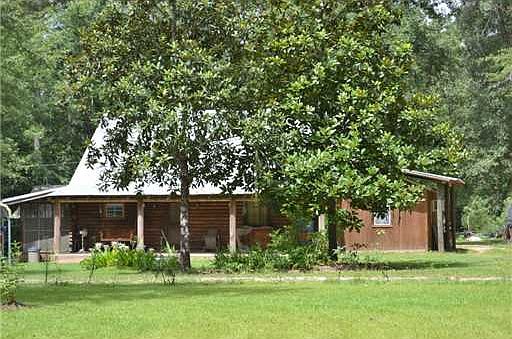 Enjoy quiet, country living on 7.5 acres just 15 minutes from the Pascagoula River. This 4 bd/ 2 ba log cabin-style home features a large kitchen, enclosed porch, fenced in yard, storage building and covered parking. Property features pond access. Don't miss out! Appliances do not stay.