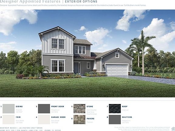 WALK to TOP RATED SJC Hickory Elementary and Swiss Pt Middle School. Gas community The beautiful Julington Craftsman overlooks PRESERVE has a stunning 2-story foyer, amazing Great Rm with fireplace. Primary bedroom on the first floor, casual dining area, plus STUDY and full Guest Suite and Powder Bath. Take in the view on the extended covered lanai.2nd floor features BONUS Rm plus 2 additional bedrooms and 2 baths. A stunning gourmet kitchen is complete with a walk- in pantry. 3 car TANDEM garage. Tankless Water Heater. Pre Plumb for Water Softener, fully irrigated with timer. Amenity Center to be complete 2023 includes Clubhouse, POOL, FITNESS CTR, DOG PARK, TOT LOT, Multi- Purpose field. Under construction. Move in approx May 2023. Images in listing are of model NOT home listed