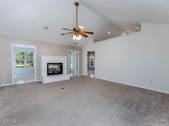 Come see this 3 bedroom 2.5 bath home in Carolina Pines featuring so much character! Upon entry you'll find a large open living area with double sided fireplace to enjoy from sunroom and living room. The large combination kitchen and dining space has two pantry closets and lots of cabinet space. Large laundry room attached with a half bath. Enjoy the natural light with peaceful views from sunroom. Large master bedroom with walk-in closet, ensuite with a garden tub and walk in shower. The two additional bedrooms across the hall are both a great size and are close to the full size hall bath. You don't want to miss out on this home ! PS the HOA maintains the lawn year round !
