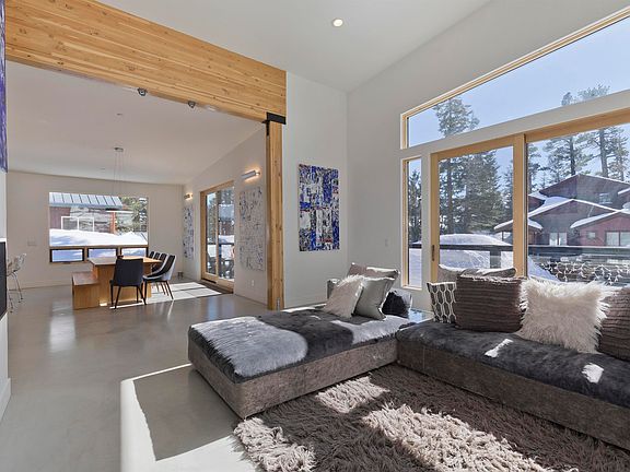 Gorgeous, newer construction, south-facing, modern home with jaw-dropping windows and beautiful views! This home was built by the sellers in 2015 with no expense spared. Clean and bold cement floors are made luxurious with hydronic heating in every square inch of flooring. Every bedroom is large with high ceilings for a very spacious feel. Open concept floor plan upstairs allows for entertaining all of your friends and family. Open both sets of oversized sliding glass doors to access the gorgeous deck for indoor/outdoor living in the flawless mountain summers or any bluebird day. Have room for your large mountain car and all your toys in the clean and organized garage, with a 9' tall garage door. Perfectly positioned on a quiet street, just off of Canyon Blvd, between The Village and Canyon Lodge, and a short walk to the free town shuttle line. This home is a must see and we know you won't want to leave! Call today for private showing and check out the 3D virtual tour here: https://my.matterport.com/show/?m=EbkogYS7tbe&brand=0
