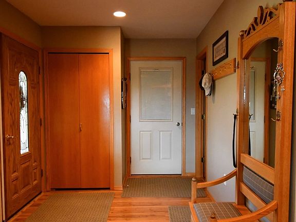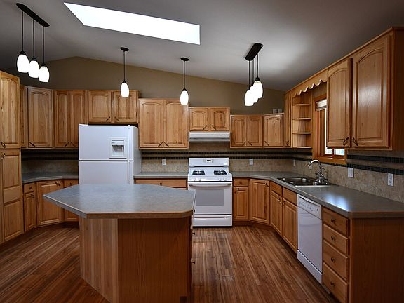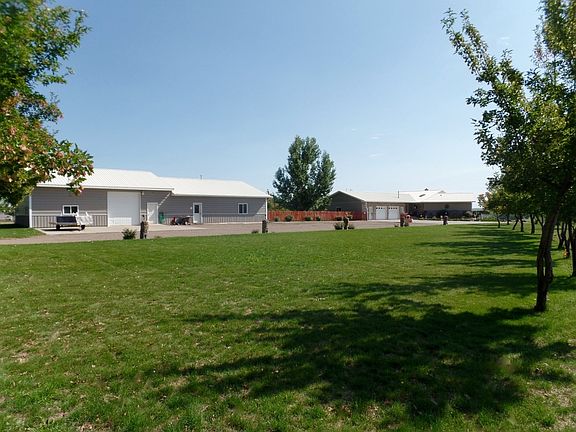 Being offered for sale is this one of a kind 3,888 sq' home overlooking the Yellowstone River with views of the Badlands and night lights of Glendive. The home was designed and custom built by the current owners in 2002. This 4 bedrooms, 3 1/2 bath home has an attached double stall garage, 40x80 finished shop and intricate landscaping spanning over 3 acres. Upon entering the home on the main level you are greeted with an open floor plan, vaulted ceilings, lots of natural light and Hickory wood flooring. The kitchen features a skylight, an abundance of cupboards and counter space with a large center island and dining area. The main level also features a built-in desk/office nook, built in trophy/display case room and a handmade Butternut wood entertainment center/bookshelf that separates the formal dining area from the living room. The highlight of the living area is the French doors that open to a covered balcony overlooking the river and Makoshika hills. A unique feature of this home is the dual master bedrooms of which each features a large walk-in closets and full private baths. Rounding out the main level is a ½ bath near the entrance and a laundry room. When descending into the walk-out basement you find a huge recreation/family room with wood stove and french doors leading to a covered patio and views of the spectacular sunrises and abundant wildlife. The lower level is completed with two additional bedrooms with large walk-in closets, a full bathroom, utility and storage rooms. The home has an attached 28 x 36 double stall, heated and insulated garage with doggie door access to their own personal fenced and shaded "pet park". The grounds also feature a 3200 sq' finished shop with a full bath and is partially heated. This 3+ acres of land has an underground sprinkling system and an abundance of Amur Maple, Crab Apple and Nanking Cherry Trees throughout the property and just out your back door you will find a garden area and grape vines for you to perfect your own personal vintage wine. All figures are +/- and all information provided is deemed reliable but is not guaranteed and should be independently verified.
