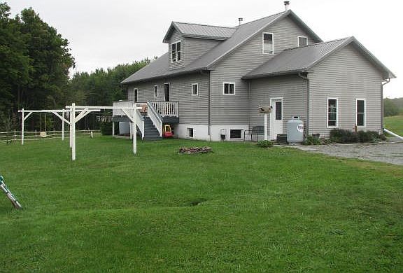 Country living at it's best! Bring your horses out to this 14.34 acre homestead. Enjoy this beautifully maintained home with custom built kitchen that flows smoothly into the open dining & living room areas. The lower level is partly finished with a full bath, one bedroom & living area or great room. Property features a bank barn with numerous horse stalls. The land has good pastures. There are also a green house & large pole barn for storage.