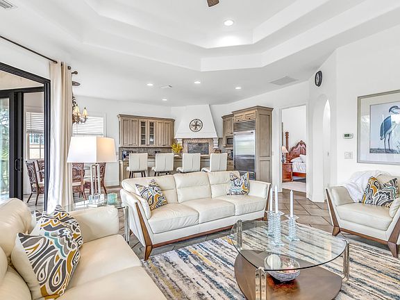 Indulge in the Rue Tropez lifestyle! This gated Mediterranean Oasis features a heated, resort style pool, spa, lounge deck,all just steps away from our beautiful beaches, and the best dining, shopping and entertainment! FULLY FURNISHED 4 bedroom, 3.5 Bath coastal retreat features an open floor plan on the upper level with floor to ceiling windows and glass doors that open out onto the large covered balcony. Prepare a gourmet meal on the new gas grill as you take in stunning Gulf views. The upper level features a gourmet kitchen with stainless appliances including Sub Zero Refrigerator, Dacor gas cooktop and custom range hood. Kitchen Bar dining, Dining Area, Living Area, Guest Bathroom, and spacious Primary Suite with ensuite bath, walk-in closet, and private balcony,with views! Located on the main level are three Guest Rooms one recently renovated into a bunk/secondary den area, two full bathrooms, and a laundry room. This home is currently being used as a vacation home and investment rental, but make it your own and decided from the many possibilities. Golf cart negotiable with purchase.