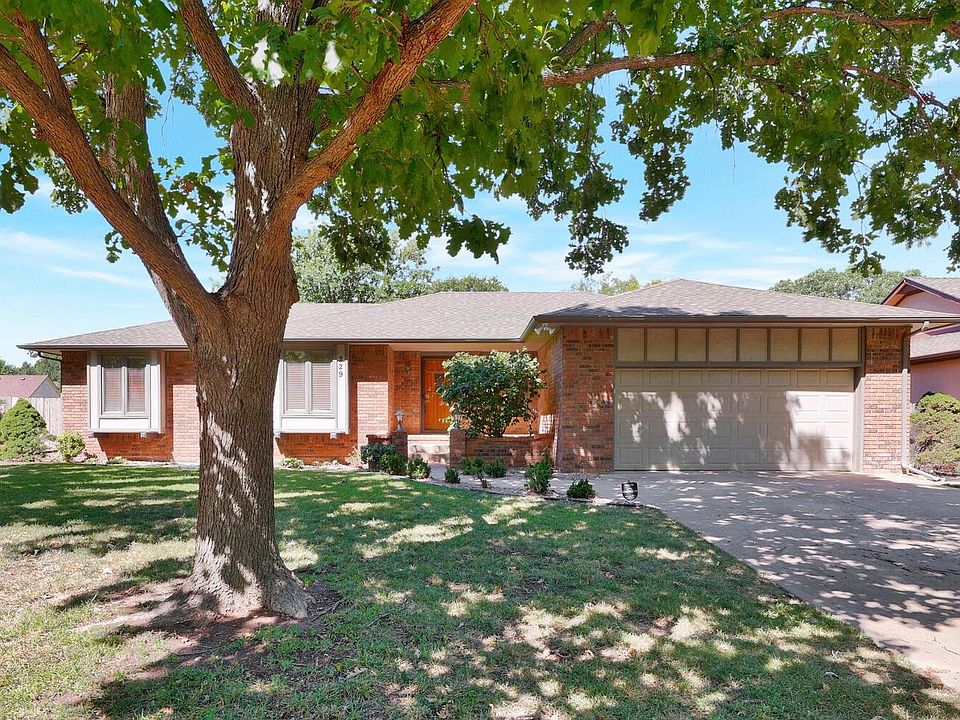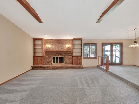 What a joy! Brick 3 bedroom on large corner lot. Fully applianced kitchen. Privacy fenced backyard. New roof, gutters and downspouts. New carpet thru out. Formal dining and eating space in kitchen Double door to large covered deck. Sunken living room with fireplace w/gas starter, bookcase and mantle. Main floor laundry. Main floor luxury bath with 2 sinks, jetted tub and oversized shower Finished basement includes large rec room and sunken family room includes fireplace w/portable dry bar sitting area. Large office or non conforming 4th bedroom. Don't miss the huge gas water heater. Security system too. Private well for sprinkler system. Windows that have lost seal to be replaced Hurry this won't last. Quick closing.