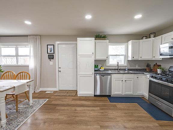 Welcome to this adorable move in ready ranch home. This home features an open floor plan with a large eat-in dining area and updated kitchen cabinets with stainless steel appliances. This home was completely updated in 2021 with brand new windows, flooring, lighting, doors, fixtures, plumbing, bathroom vanity, toilet, ceramic tile bathtub and electrical panel. This home offers a large backyard, with a new concrete patio added in 2022. Conveniently located on the west side of Columbus with easy access to the highway and just 20 mins from downtown.