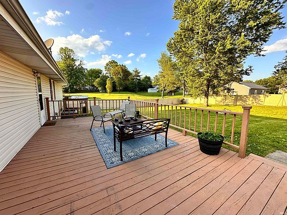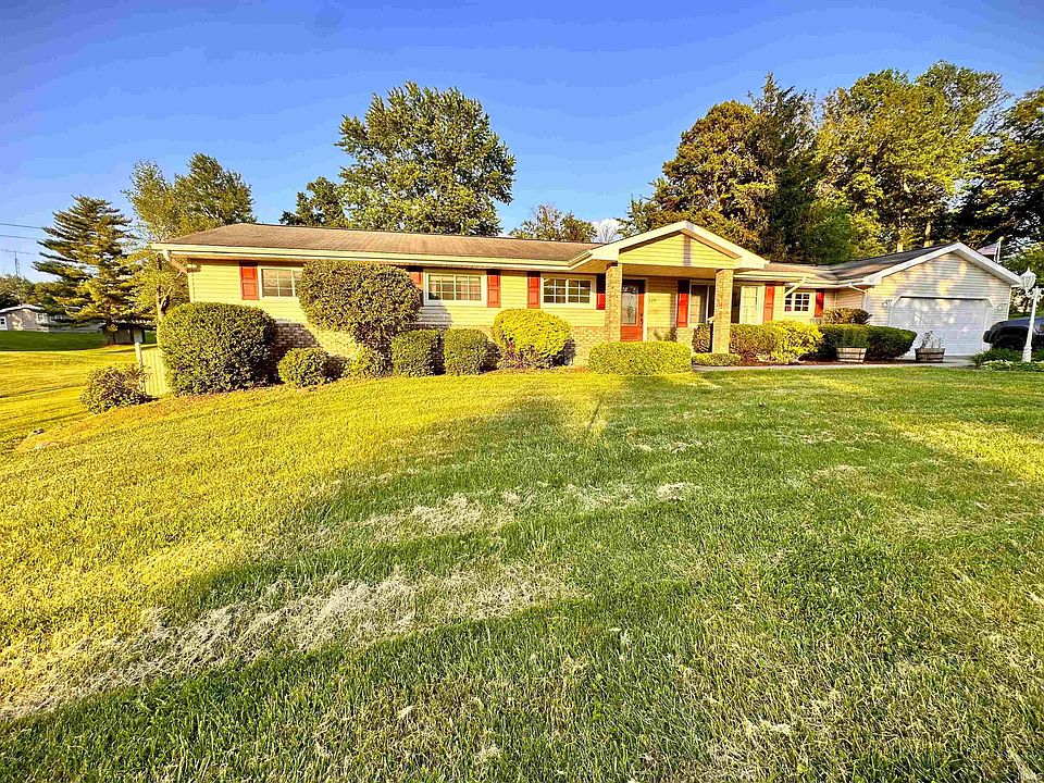 This1668 SF ranch features 3 beds & a possible 4th, 2 full baths on a double lot within city limits. It offers a living room, kitchen, laundry nook, 3 beds, 2 baths with a bonus room. The kitchen is equipped with newly updated cabinets, tile backsplash, black appliances, laminate countertops, farmhouse sink and island/breakfast bar. Perfect for creating delicious meals and hosting gatherings with loved ones. New LVT flooring in several rooms, and carpet in main bedroom. This home features a very spacious main ensuite and a huge custom walk-in closet. Two additional bedrooms, a 2nd bath, and a bonus/room completing the home. Retreat to the outdoors and enjoy your private back yard or fire up your grill and enjoy the back deck and fire pit. This huge fenced in backyard is great for letting the kids and pets run. One interesting feature of this home is the 2-car drive through garage that leads to a second 2 car garage. That 2nd garage is heated with a wood stove. There is also a very large front/side yard and a built-in basketball goal. 2-year-old gas furnace and hot water heater. This home offers comfort, space, and modern amenities for you and your family at an affordable price.