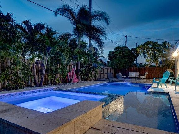 Heated saltwater poolNew roofGranite countertopsExpansive backyardLush tropical landscapingSpacious family roomOpen-concept layout