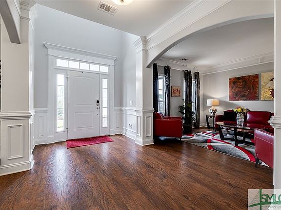 Looking for privacy? This gorgeous home is in highly desired Belmont Glen on a premier lot that backs up to woods and a pond. The upgrades are endless in this spacious floor plan with arched doorways and beautiful hardwood flooring. The main level offers a stunning dining room with coffered ceilings and chair rail molding, a large front living room, oversized den with fireplace, a guest suite complete with walk-in closet and full bath, a large laundry, and half bath. This all leads to the kitchen with custom backsplash, granite countertops, large island, stainless steel appliances, walk-in pantry and built in desk. The kitchen gives access to the screened in porch and oversized patio. Upstairs opens to a large loft area perfect for entertaining, a full bath and 4 additional bedrooms including the Master bedroom. The Master offers a large sitting area, his and hers closets, and deluxe bathroom. Come see this beauty located in the South Effingham School District before it's gone!