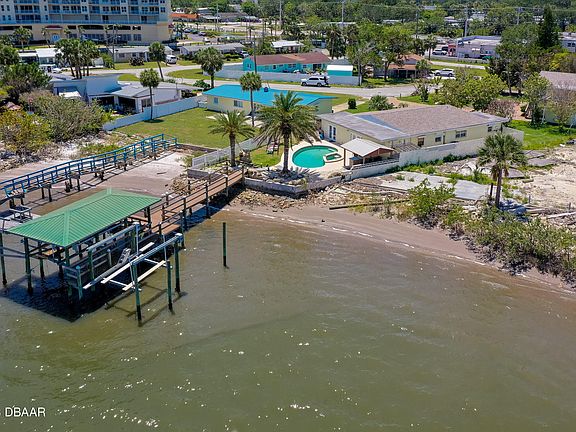 Direct Intracoastal Pool Home! Stunning 4 bed, 3 bath home directly on the river with your own private boat dock with lift and detached 3 car garage with RV bay. BONUS Guest 1 bed/1 bath apartment above garage. Roof 2019. Enjoy your outdoor paradise lounging around the sparkling pool and cabana bar/outdoor kitchen with granite counters and sink, all while enjoying the gorgeous Intercoastal views and breezes. The main house has a great open concept and two huge living spaces. Split bedroom floor plan with solid surface flooring throughout for ease of care. The kitchen features granite counters, breakfast bar seating, recessed lighting, full stainless steel appliance package and white cabinets for a bright and airy feel...Continued... The fireplace in the living room is the perfect way to set the ambiance on a cool night. Primary bedroom with walk-in closet and full ensuite with walk-in shower. Circular drive to the detached garage make RV and boat parking a breeze. Main house A/C 2014, water heater 2019. Apartment water heater 2017, A/C are window units. Great location with easy access to I-95, shopping, restaurants, entertainment and the World's Most Famous Beach. All information recorded in the MLS is intended to be accurate but cannot be guaranteed.