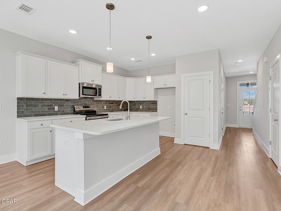 Seagate at Clara is a new townhome community nestled in the vibrant city of Panama City Beach, FL. This two story features board and batten exterior and covered entries. One car garage provide a great space for storing beach essentials. These open concept townhomes boast stylish kitchens with large islands perfect for gatherings. The elegant Owners Suite is designed with comfort in mind showcasing a large walk in closet and double- bowl vanities. The community pool is opening in May with cabanas, lounging, seating and grilling stations. The dedicated dog park with be compete in April. This community is in a prime location with a nice walk to local shopping and the beach. You'll enjoy the white sands of the Gulf of Mexico and be just minutes from Pier Park.