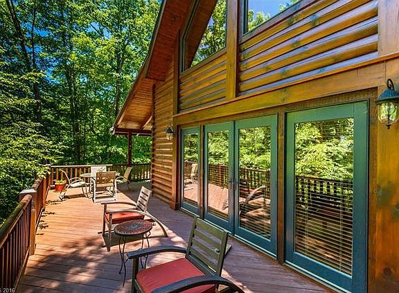 This light and bright custom built log home has everything you would want in a mountain getaway-minimal interior and exterior maintenance, 180 degree long range winter mountain views & within walking distance of the community lake. Lake is trout stocked and used for swimming, canoeing & fishing. High end interior finishes including hardwood floors, handcrafted cement countertops in kitchen, ss appliances, jacuzzi jet tub/shower,huge MBR & decks.