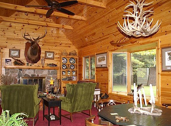 Wow! What a setting! 343' of frontage on the lower North Branch AuSable River. A quality cedar sided chalet with 3 fireplaces, custom finished walkout lower level with wet bar and open staircase. Knotty pine interior, french doors, quality kitchen and bath. Family room offers bow window and doorwall onto deck plus massive fieldstone fireplace. Workshop and extensive riverside decking and stairway - ideal for large gatherings.