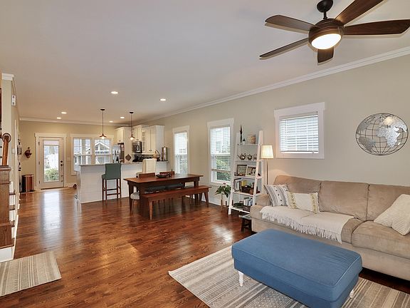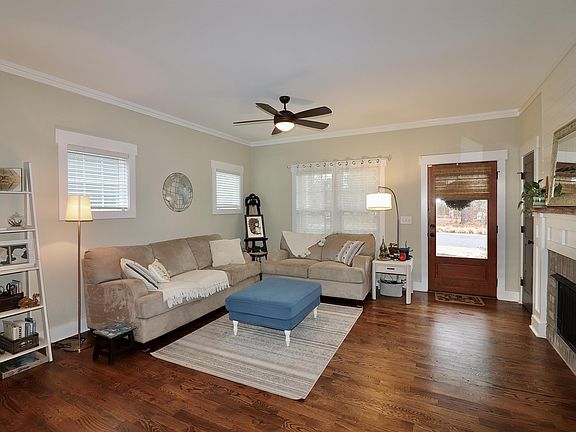 The double level front porch welcomes you into this farmhouse chic abode. This cozy cottage home has an open concept living space with hardwood floors, gas log fireplace, granite countertops, stainless steel appliances and bright white cabinets. The large windows let in tons of natural light. All bedrooms upstairs feature vaulted ceilings, bright neutral paint, and updated hardware. The primary bedroom has a stunning walk out covered porch. There is a small workshop/bonus space in the back yard. Enjoy the pool, playground, lawn care, and clubhouse with rent!! This home is located less than a mile from downtown Southern Pines, with tons of local community life and conveniences for every taste. Easy commute to Fort Bragg, Hwy 1, Pinehurst medical campus, and numerous golf courses.