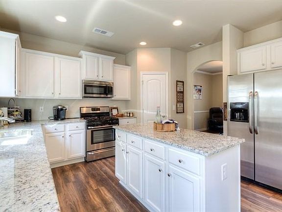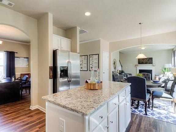 - Kitchen Features: Pantry, View to Family Room, Stone Counters, Kitchen Island, Cabinets White