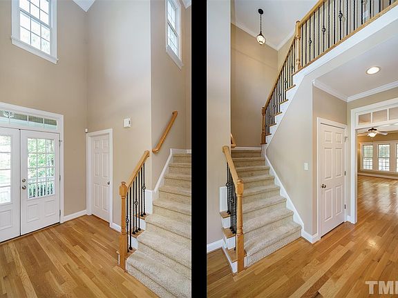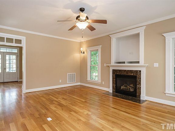 BACK ON THE MARKET at a GREAT PRICE. This Beautiful 5 BR, 3.5 bath home on 13th Fairway of the Neuse Golf Course has Hardwoods, Spacious kitchen, GRANITE countertops, lots of cabinets, and NEW SS APPLIANCES. Downstairs MBR has HUGE walk-in closet, bath has double vanity, whirlpool tub and separate shower. BONUS ROOM has window seat w/storage and full bath. Great views from LARGE Screened Porch, deck, and fenced in backyard. Concrete floored workshop in walk-in crawl space and unfinished walk up attic!