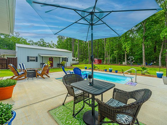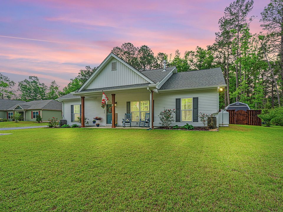 Custom Ranch on 1.45 Acres with Pool, 4-Car Garage & No HOA! Welcome to your dream property--this 4 years young 3 bed, 2 bath ranch checks all the boxes. Step inside to an open-concept layout featuring a spacious great room with a cozy gas log fireplace. The light-filled kitchen impresses with classic white cabinets, quartz countertops, a large island, gas range, walk-in pantry, and a stainless farm sink--perfectly connected to the dining area for effortless entertaining. Vinyl plank flooring runs through the main living spaces and primary suite, while the two secondary bedrooms feature plush carpeting and share a full hall bath. The split floor plan ensures privacy with the primary retreat offering a walk-in closet, dual sinks, and a walk-in shower.Enjoy outdoor living year-round with a covered front porch, screened back porch, and large patio. Your backyard oasis includes a stunning in-ground fiberglass saltwater pool, finished "she shed", fire pit, and utility shed all set within a fully fenced yard. Enjoy lovely, well-maintained landscaping with a lawn irrigation system in both the front and back yards. A covered grilling area under the lean-to of the detached 4-car steel garage with 10-ft doors adds even more functionality. There's plenty of space to park your RV or boat, and yes you can even get some chickens! The back of the property offers wooded privacy, and you're just a short ride away from everything Summerville has to offer.