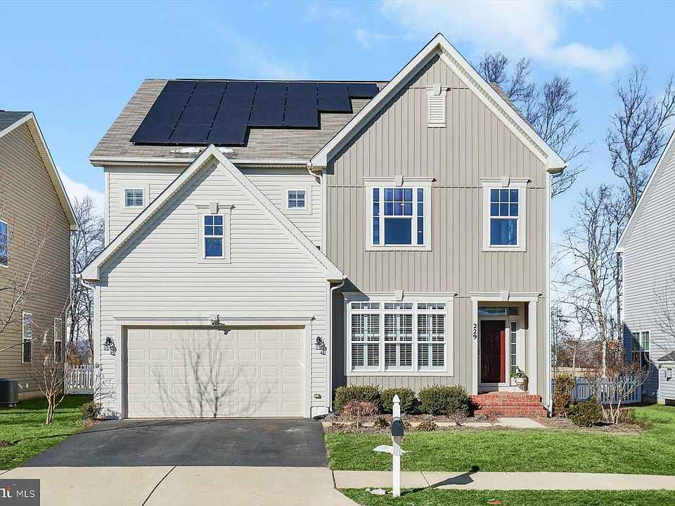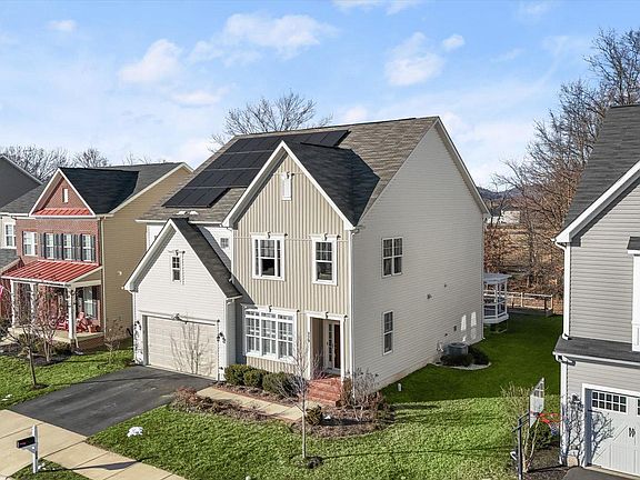 This meticulously maintained home in the sought-after Mayfair neighborhood offers luxury living with incredible savings. Owned solar panels reduce electricity costs to just $14/month on average, saving thousands annually and providing significant tax benefits. Nearly 4500 square feet of this beautifully adorned interior offers an abundance of updates, along with picturesque views of the Blue Ridge Mountains and a serene, tree-lined lot. Ideal for both relaxation and entertaining, this home features an open-concept layout with gleaming hardwood floors throughout the main level and up the stairs. The heart of the home is the spacious kitchen, which includes granite countertops, a central island, stainless steel appliances, a walk-in pantry, and seamless access to the expansive deck – perfect for hosting gatherings. A main-level office provides a quiet retreat, and the easy flow between spaces ensures both comfort and functionality. Upstairs, you'll find 4 generously sized bedrooms, including a luxurious primary suite that offers breathtaking views, dual walk-in closets, and an indulgent spa-like bath with separate vanities, a large shower, and a water closet. One of the additional bedrooms also features an en-suite bath, offering privacy and convenience for guests. The second level also includes a loft space, ideal for a playroom or reading nook, and brand-new carpeting throughout the entire second floor. Three full bathrooms on the upper level offer ample space and comfort for family and guests alike. The finished lower level includes a spacious recreation room with walk-up access to the backyard . Additional space for a den and bath is available, but is currently utilized as a workshop. The outdoor living space is equally impressive, featuring a large deck with a pergola, two raised garden beds, and plenty of room for entertaining or simply enjoying the peaceful surroundings. This home is ideally located within walking distance to Mountain View Elementary and Woodgrove High. Residents of the Mayfair community have access to a variety of amenities, including a basketball court, playground, pavilion, and community paths. The home’s prime location places the W&OD Trail and downtown Purcellville just minutes away, offering a range of dining, entertainment, and shopping options. Gateway Plaza is also within 5 minutes, providing additional choices for shopping, dining, and entertainment. Purcellville is the epicenter of Western Loudoun County, and is home to a vibrant local culture, with about 60 breweries and wineries, along with a large array of farms to explore. Whether you’re seeking outdoor adventures or local flavors, you’ll find it all right at your doorstep. This home truly offers the best of both worlds – a tranquil setting with easy access to schools, fantastic amenities, and everything Purcellville has to offer. Don’t miss your chance to make this immaculate, move-in-ready home yours!